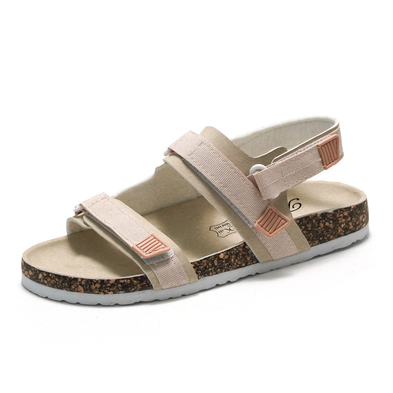 Te damskie sandały na paskach łączą podeszwę w stylu korka, zapewniającą wsparcie, z regulowanymi paskami, które gwarantują pewne dopasowanie. Ich odkryte palce i prosty fason sprawiają, że są idealne do noszenia na co dzień oraz podczas nieformalnych okazji.